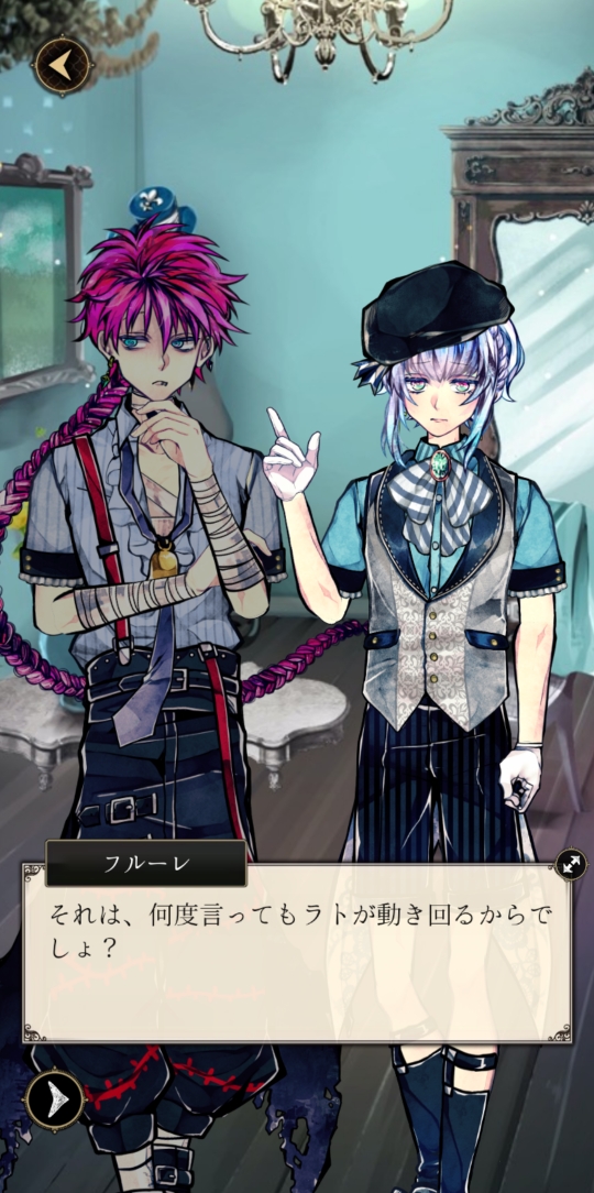 藍鼠 @admin ユーハンくんと再会したけど、「サーカス団に潜入したときに謝罪していただきました」とかベリアンくんが言い出して読み手の私は混乱してますが? 主様も「そうだったね」て反応してるということはイベストか? EP1のあとはイベスト挟む方が良かったのかな~ イベ一覧みてたら“EP2”あるし、RULE覗いたら「EP1の続きです」てシレッと書かれてるし なら今読んでるEpisode2はどう略すんだよw ユーハンくんの前に出てきたグロバナー家のテディ副隊長とやらも新加入執事の一人だったの見た #あくねこ