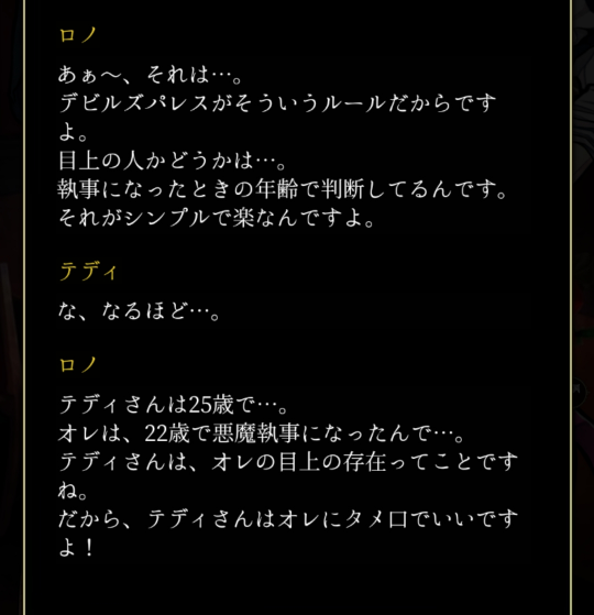 藍鼠 @admin ストーリー、次の話が自動で再生されるしBGMもスムーズ移行なのに、前話の会話3つ分くらい再表示されるのはテンポ悪いなって思う あと主様が頷くときの上下揺れ(2回)…1回でいいぞ主様 主様の行動と反応が微妙だなって感じることあるけど(ムーちゃんとふたり(?)での深夜徘徊とか尾行とか)、執事勢がちやほやしてくれるのは割りと楽しい #あくねこ