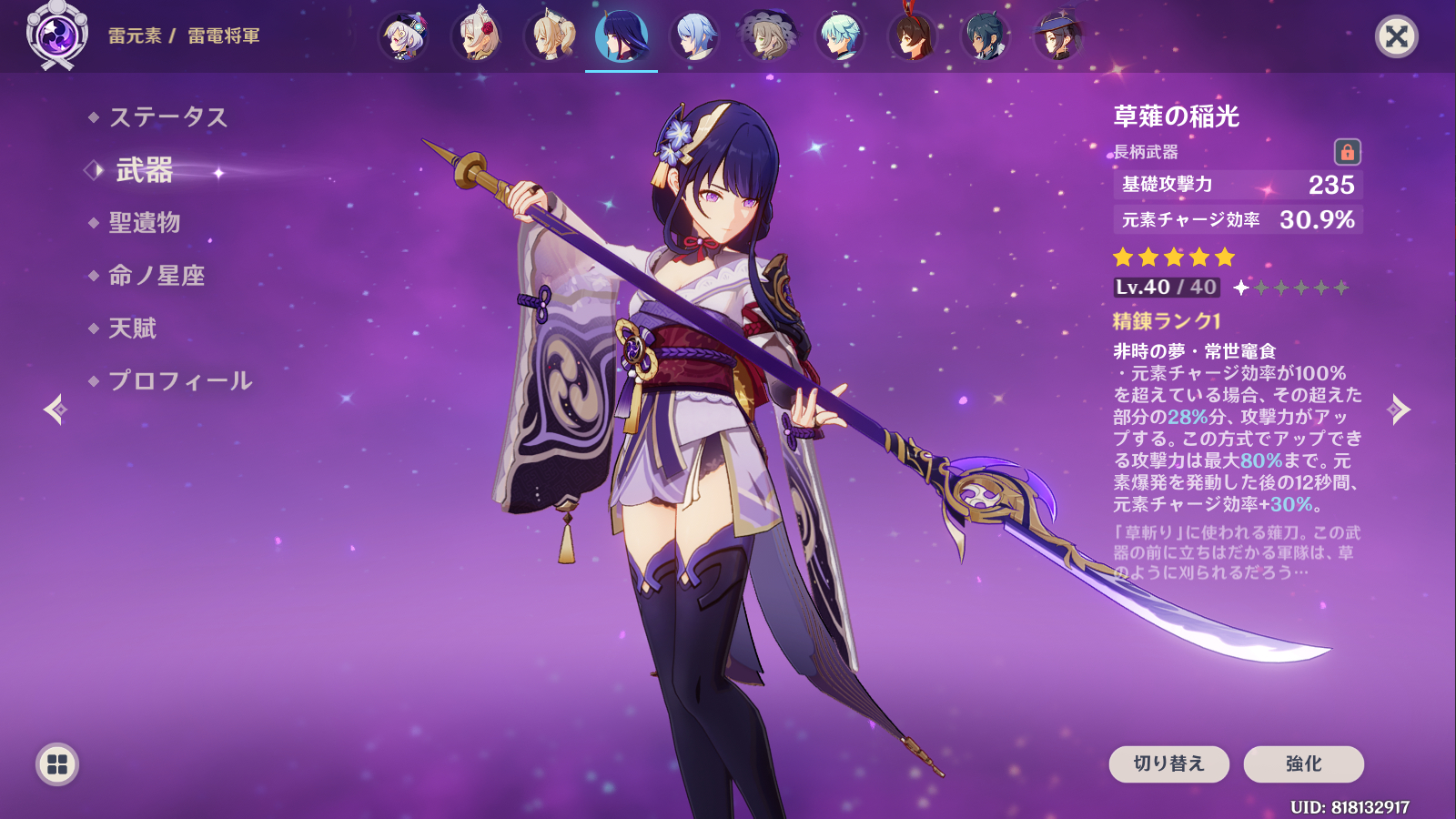 藍鼠 @admin ねんがんの 雷電将軍を てにいれたぞ! 稲妻編やって、キャラクエ(原神では魔人任務だっけ?)やったときから欲しかったんですよ雷電将軍 そのころの話はてがろぐのほうに書いてるけど、ビジュアルほんと素敵… てことで引いたぞ! 続きを読む同時にピックアップされてる星4勢が軒並み凸できちゃうんだ これで雷担当も心配いらんな。今までもフィッシュルちゃんとかレザーくんが頑張ってくれてたものの育成状況はそんなでもないのでシナリオ進行しんどい 武器はかなり迷ったんだけど、あの槍を持ってほしかったから引いたわよ!!!! 似合う~~~ 強化素材が足りなくてLv40から上げられないので素材集めにいかねばならない 水曜/土曜/日曜だそうです。年末ぅ…… 兄さまもほんと…すごく迷ってんだけど、次の復刻いつになるかわからないから引いた 武器まで追うのは無理でした。水は完凸タルタリヤが主力張ってるものの強化素材取りに行くのがしんどくて(水の精霊みたいなやつ)追い越すときがくるかもしれない。タルさん継続ダメージ入れられるのも強いんだよねえ ぼちぼち育成していきたい。 神里兄が来る前にすり抜けディルックの旦那が来たんだよ。おかげでメイン火力が強化されたから……うん、来てくれてサンキュー。ディの旦那は私が原神始めたころからの主力だからな!!畳む #原神