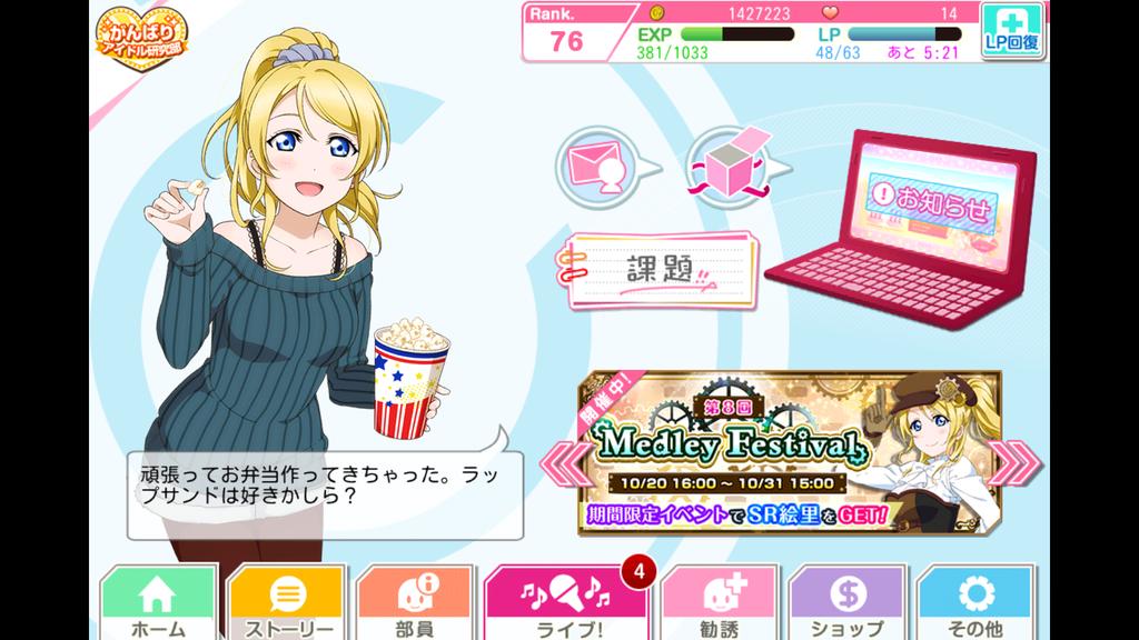 イベントが日曜終わりって珍しい印象。今回は割と余裕をもって取れたにこにー。かわい…