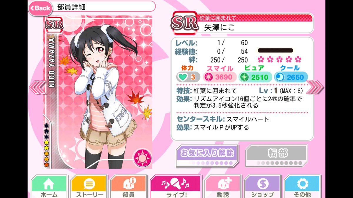 三年ピックアップでSRにこ覚醒できた!バレンタイン(らしい)衣装と台詞かわいい。…