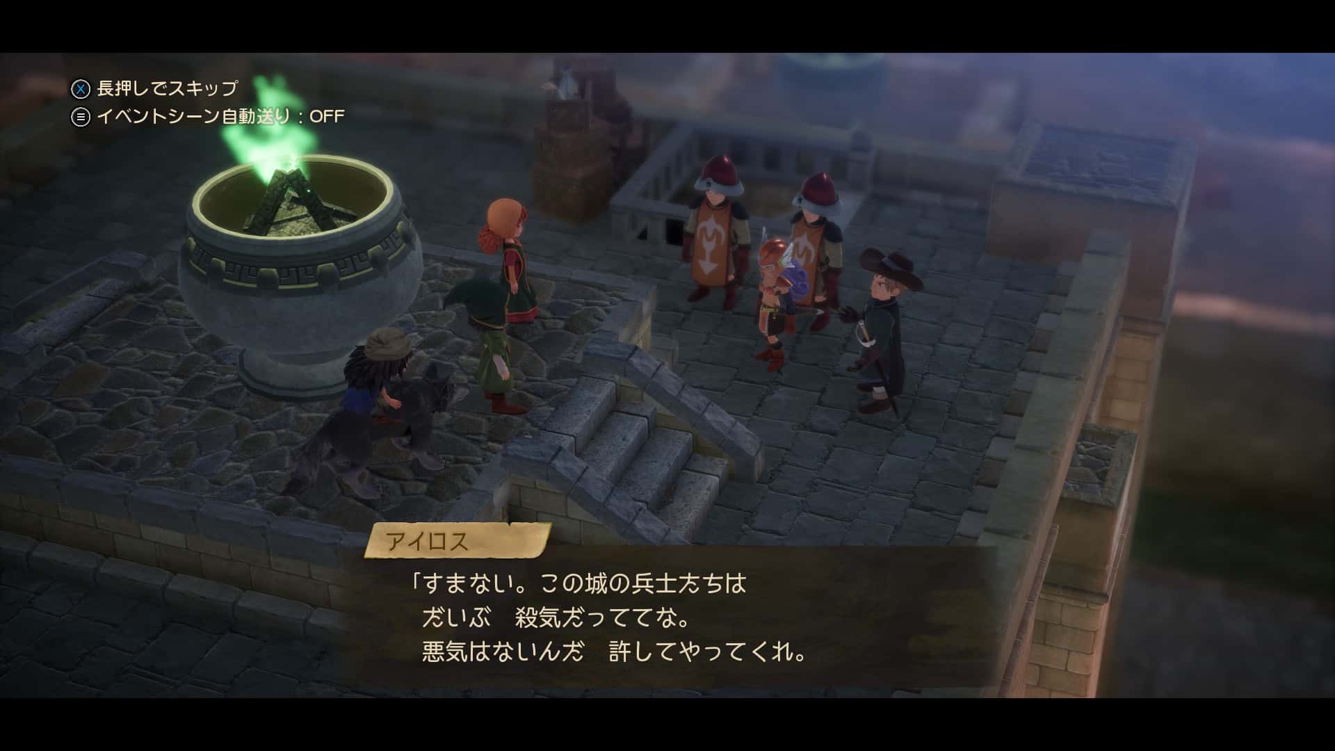 同じような理由(魔王復活の地でなにか起きた時にアイラの手助けがしたい)でメルビンもお留守番……わざわざ3人にさせたの、これ飛んだ先にキーファいるでしょ
