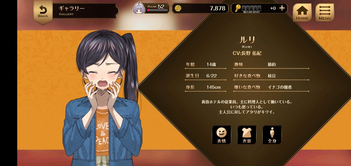 藍鼠 @admin タイトル画面誰もいなくなっちゃった。音子ちゃんも額縁の中へ ルリさんと一緒のやつが一番好きかもしれない。かわいい トゥルーエンドでギャラリーの立ち絵解禁されてたんでざっくり見てきた。大外さん多いは多いけど衣装差分も入れたら音子ちゃんだねえ この辺見たことない気がしますけど(ルリさんは確実に見てない)特別編か #誰ソ彼ホテル