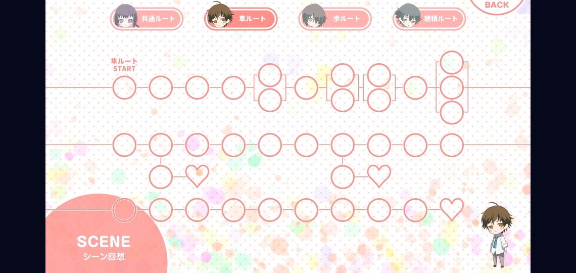 藍鼠 @admin ニコラエンドから見たからエンディングの温度差に戸惑うw ニコラはBEST、GOOD(国外駆け落ち)、BAD(共依存&籠の鳥)でどのエンドもわりかし乙女ゲーって感じだったのに、楊のはGOOD(楊死亡)、BAD(リリィ死亡&老鼠(ラオシュウ)壊滅)なの救いがない 楊のバドエンその後もちゃんと追加あったのは良かったけど、楊を商売相手にしたお姉さんはお気の毒です……楊の小姐(シャオメイ)の発音好きだったわ 選択肢までスキップないのがだるいけど好感度設定つきチャートセレクトでBADとBEST、強制エンドは見やすい印象 GOODがめちゃくちゃ見づらいね!!ニコラめっちゃ苦労したわ……チャートから行けるか試してたけど面倒になって攻略見た 選択肢から選択肢までが長くて待機時間発生するのオトメイトだな~ あとステータスの見方わからん #ピオフィオーレの晩鐘