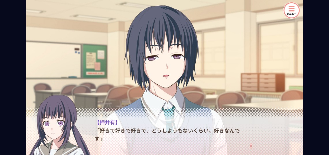 藍鼠 @admin タイトル回収!! エンディング見てタイトル画面が変わるゲームはいいものだ…… 隼ルートはお互いがお互いの喜ぶことがしたい、が行動原理なとこ好き あとキス(未遂)のスチルえっちだわ 押井くんのことも隼に話した上で平穏に収まってよかったよかった “選ばせる”ことに意味がある選択肢けっこう好き #わたじゅう