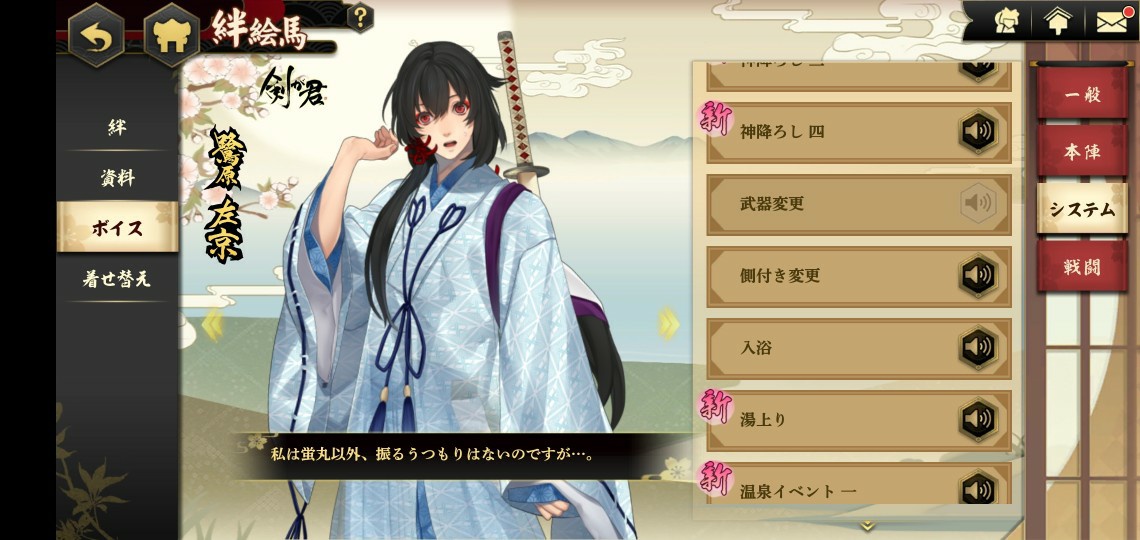 武器変更の時「蛍丸以外使う気ありません」的なこというの好き。蛍は実装されてないのでー、システム都合で普通に変えちゃう #剣刻 #剣君