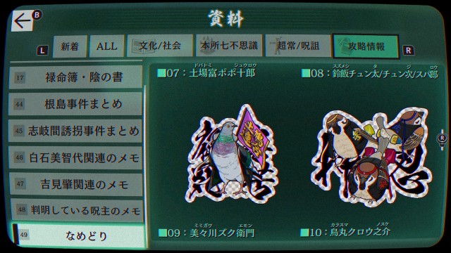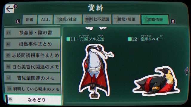 藍鼠 @admin 興家ルート短いとはいえ、しらみ潰しめんどくさいのでサクッと攻略見た 分岐点、呪詛珠手に入れて弓岡さんと会話するとこで出てくる鬼火か~~~ そういやあったねこんなの。改めて見ると送り提灯の火だわ これ確かマダムルートで触って、なにか変化があるかもしれない言われて全箇所回ったのになにもなくて謎だったけど、今思うと麻由さん(送り提灯のカシリ主)ルート開いたのこのタイミングだったかもしれない 送り提灯の元がセーマンぽいもんなあ 攻略見たついでに先になめどり集めしました。三羽集まってるスズメとヒヨコのやつと皇帝ペンギン好き #パラノマサイト