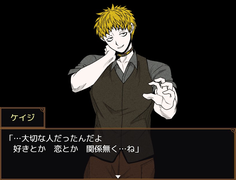 藍鼠 @admin #キミガシネ タブレットの音、緊急地震速報のアレっぽくて不安になるぅ~~ この音ヤダなあ。役確定までいったあとはもう鳴らないでほしい 続きを読む ナオさんのこの立ち絵好き とりあえず、前編最後の討論時間切れからのアリス生存ルートデータで進めるよ。 ジョーの幻影濃度アイコンなくなったってことは2章後半はSAN値ピンチにはならないのかな? 前編終わるときには100到達してたと思うけどギリギリセーフだったのかもしれない ジョーは親友でした、からのこれで涙腺がやばい 相棒スキルとやらが使えるようになった。ケイジさんいい人 一人称「おまわりさん」なところ、実はかなり好き 犠牲者ビデオに映ってたのと、本当は元警察官らしいところが今のところ気になるかな これ右下にアイコン出っぱなしかい?存在感w ジョーもこのアイコン付きで連れ歩きたかった。1章探索するときほんの少し一緒だったくらい? 酒場探索でソウが開けられなかった(腕力不足)戸棚をあっさり開けてるとこ好き。ここ探索する前にジョーが「サラは力持ちだろ」みたいな話してたから、ソウと一緒のときもサラちゃんがフンヌ!って開けてくれると思ってたよ 一階再探索(ギン探し)で、なんとなくジョーのこと思い浮かべて最初に酒場いったらほんとに幻影いてびっくりした……サラ……畳む