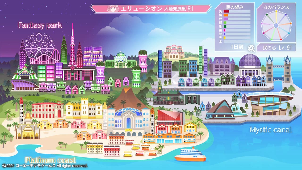 藍鼠 @admin #アンミナ ヴァージルのランドマークイベント回収ついでにレイナの好感度上げたり(イベントあった)属性のバランス調整してエンディング見たら次周向けの特典発生したやったー 特殊な見た目の建物が増えるの良い キャラの好み、右上が項目「???」で謎だったけど、何度かヴァージル訪問してたら「好きなキャラクター」だった。ランドマーク全部にいるのかファンタジーパーク限定なのかはわからん ファンタジーパーク9の嫉妬アンジュかわいいし、ヴァージルの「もうここに泊まっていきませんか」吹いた。駄目です