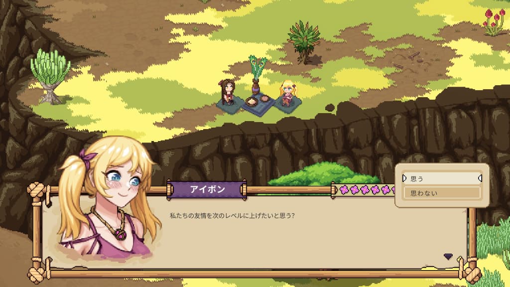 藍鼠 @admin #Roots of Pacha アイボンちゃんから初めてユニークアイテムであろうお菓子をもらってテンション上がったままお礼を言いに行ったら「サバンナに遊びにいかない?」って花6のイベント開始されたんですけど 『あー!』って杏ちゃんスタンプが脳内に浮かんでたよ…… 花6で?もう?って思ったけど、アイボンが上がるの早すぎるだけで交際期間ある牧物もその辺ですよ 悩んで、迷った結果こうなりました だって!!一番好みなのMODの立ち絵が!!!! 照れてるのも可愛いし、がっかりする顔見たくなかった。他の人のお花がピンクのままなの微妙に気になってますけど、私は一途プレイ派なのでイベント見られるところまで見て気になったキャラは次周に持ち越しだよ! ジャックかイロイあたりがライバルポジになるキャラだと思うけど、今後のイベントにも関わってくるのかなー コンプレックスの対象だった兄は一段落した感じする デート終わりに自分でつくってきたっていうジャーニーケーキ食べて「アタ(妹)の言うとおりだった……私、料理下手!!」って締めだったの笑った。プレイヤーキャラも笑ってて可愛かったけど、アイボンさん味見しないで送りつけてきたんですかwww お手紙に“焦げてるところ落とせば食べられると思う”みたいな文章入ってた時点でダメw