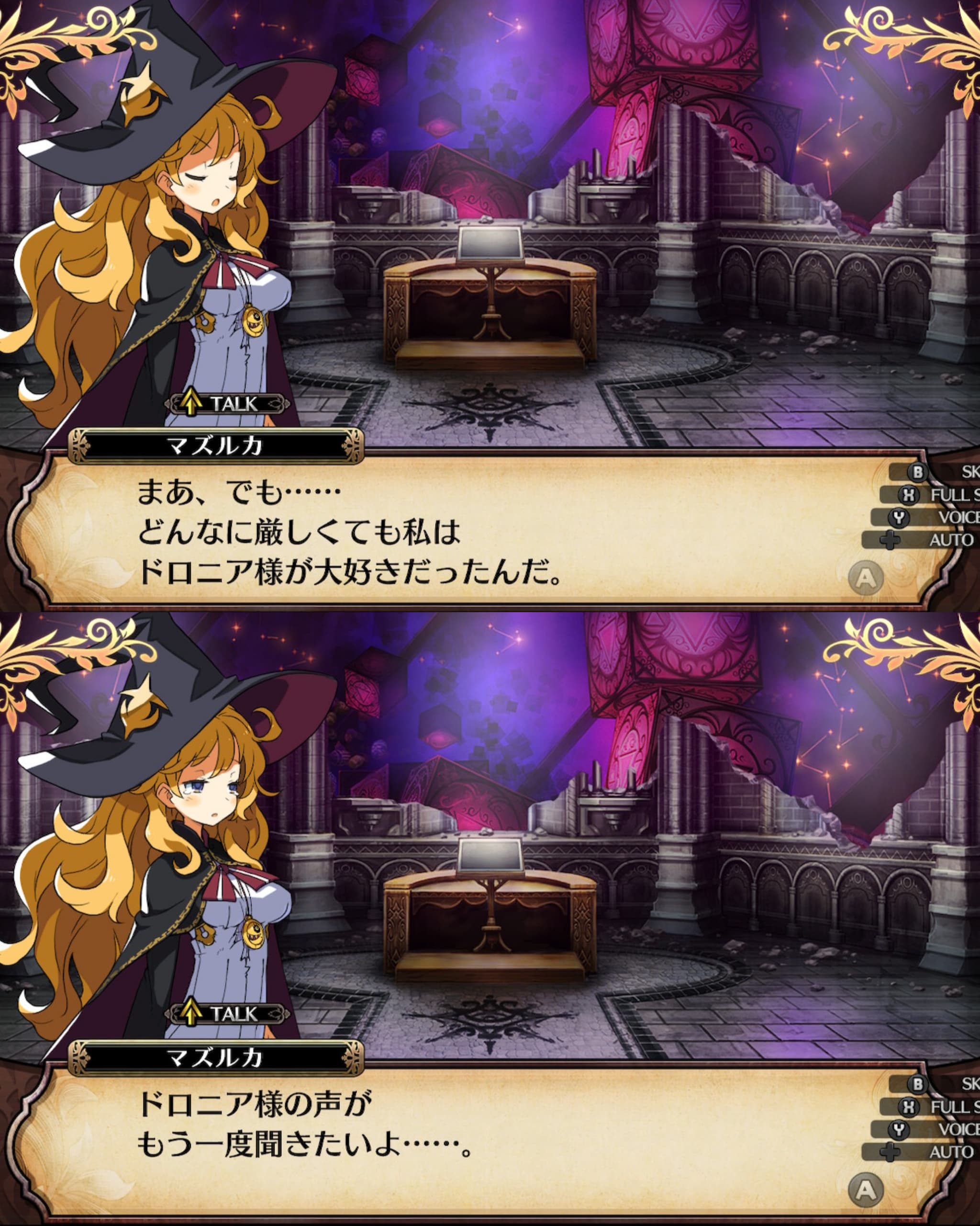 藍鼠 @admin #ルフ魔女 小部屋の番人はドロニア寄生型 「やるよレキテーちゃん!」てめちゃくちゃあっさり戦闘始まるw どのへんでドロニア様だと認識してんの?って思いながら見てましたけど、魔法当たる時の引きで下になにかいるのを察知→カメラ動かせたので見てみたら下にくっついてた…エグい… 魔法がエフェクティヴで通りやすかったからドロニア型一号よりずっっっと優しかった。一号の強さなんなん… 「どんなに厳しくても私はドロニア様が大好きだったんだ」 うん……知ってた ドロニア型もドロニアの声持ってるけど、そういうことじゃないんだろうな。ドロニア様本人の口から、ルカに接する声が聞きたいってことだよね