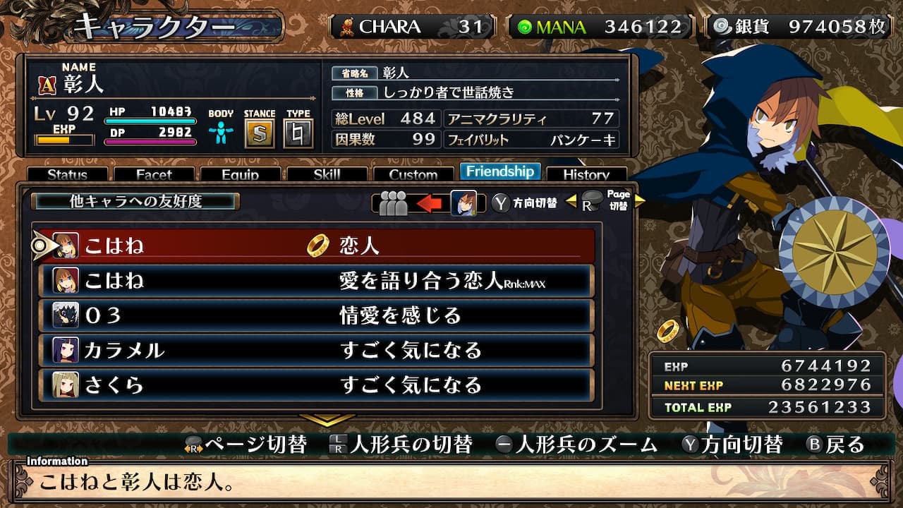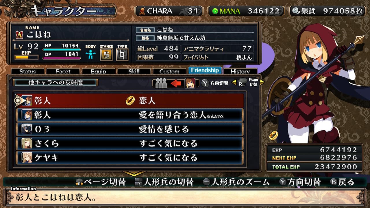 藍鼠 @admin #ガレ魔女 友好度Maxの表記、 同性だと身を焦がす愛の奴隷 異性だと狂おしい愛の奴隷 ゴシック系(中性)は異性の場合と一緒ぽい アム系(両性)だとどうなんだろな。いま居ないからわからんね 彰こは人形兵は毎度ラバーリングで恋人表記にしている(モチベーションup) 性格はそのうち整えるたぶん。もうちょいカラーバリエーション増えるか職またいでイラスト使えたらよかったのに 騎士物語のリング💍もいいかもと思って使ってみたけど、ナイト/プリンセス表記がしっくりこなくてロードしてやり直した アステル♀(ボイス1)「ふ…ふつつか者ですが、どうぞよしなに」