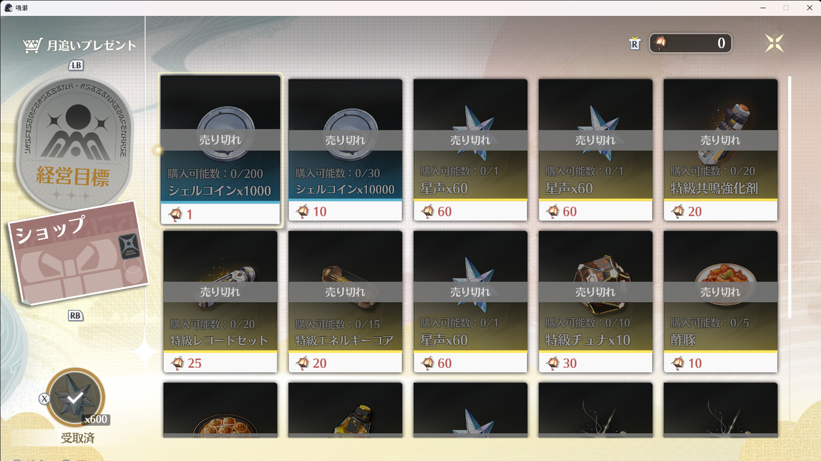 月追祭イベ、コツコツ店とキャラ育てるだけだったから、全店完凸だけじゃなくてノルマ全クリアも達成できたぞー。やったー