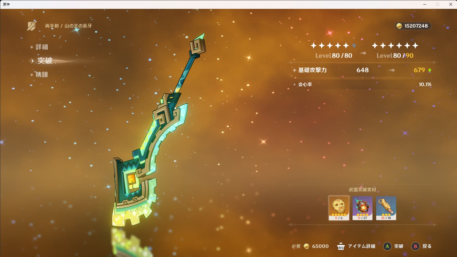 進捗。武器は80まで上げられたけどレベルはまだ70。なにもかも足りない