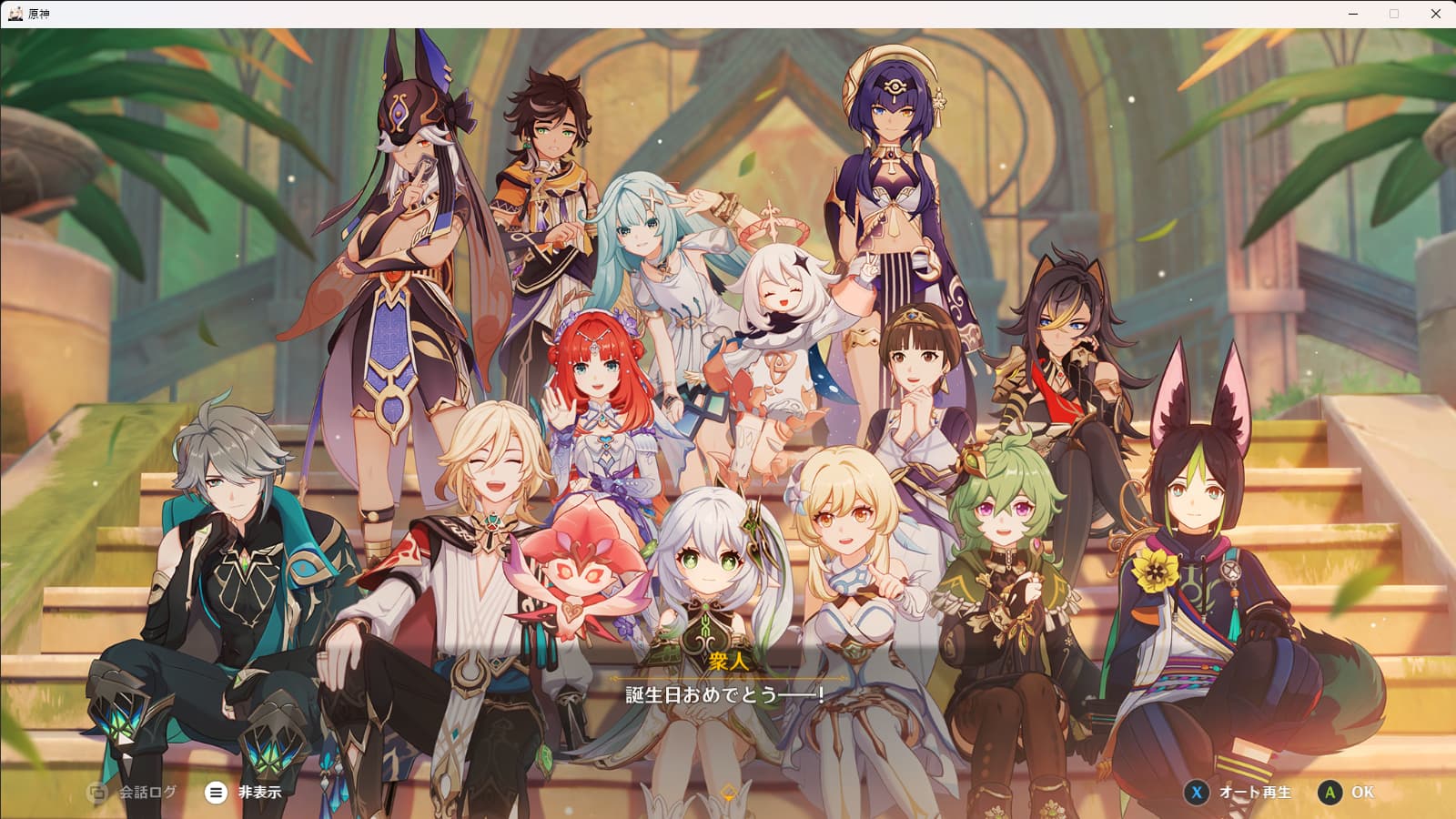 ナヒーダおめでとう。ムービー気合い入ってたし、プレイアブルキャラ中心にわいわいしてて良かった。花霊のソルシュって元から声入ってたっけ…?どうだっけ