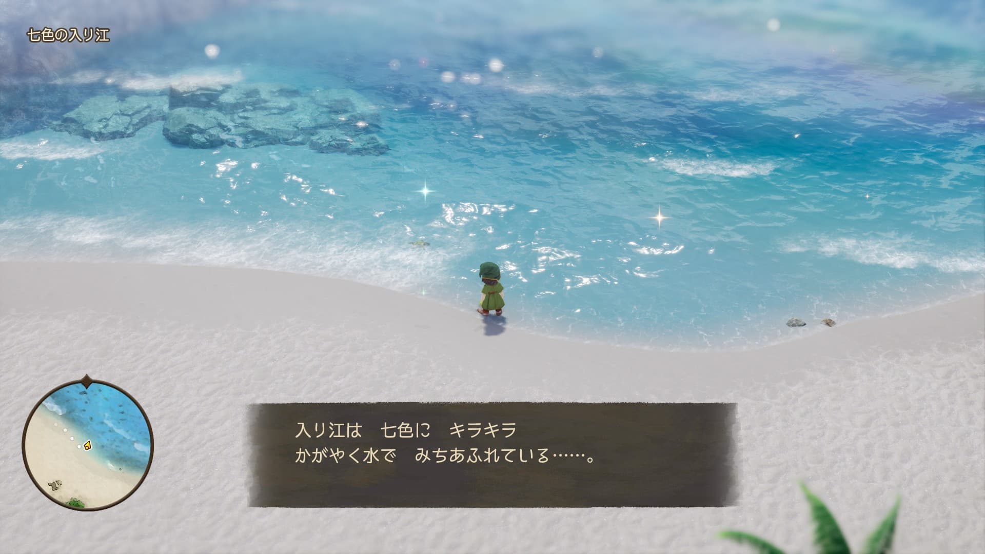 この辺は全然覚えてないや。キーファのところ行く前に七色の入り江に寄ってみたけど、言うほど七色か?水が綺麗すぎて七色加減がわからん。ここの水を瓶に入れるイベントがあったような気がする