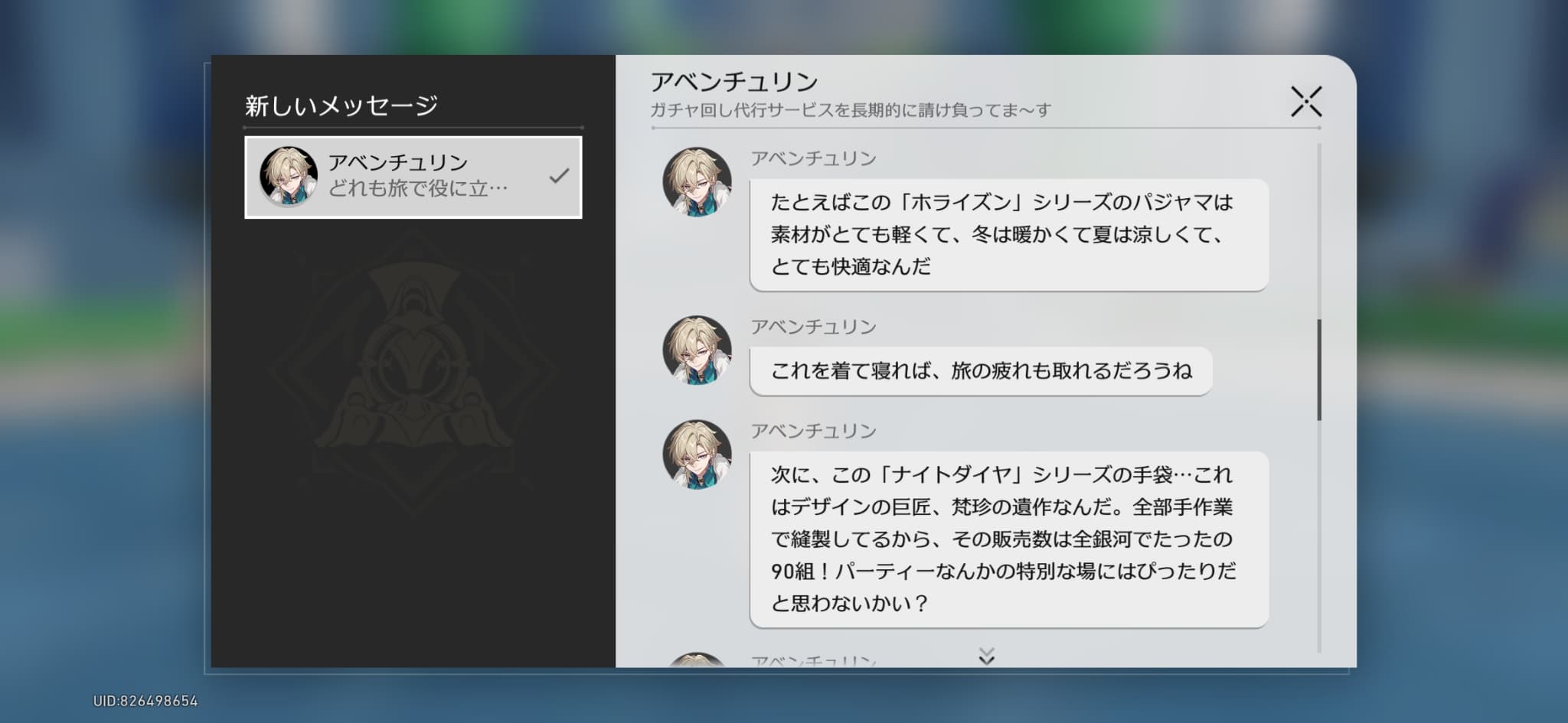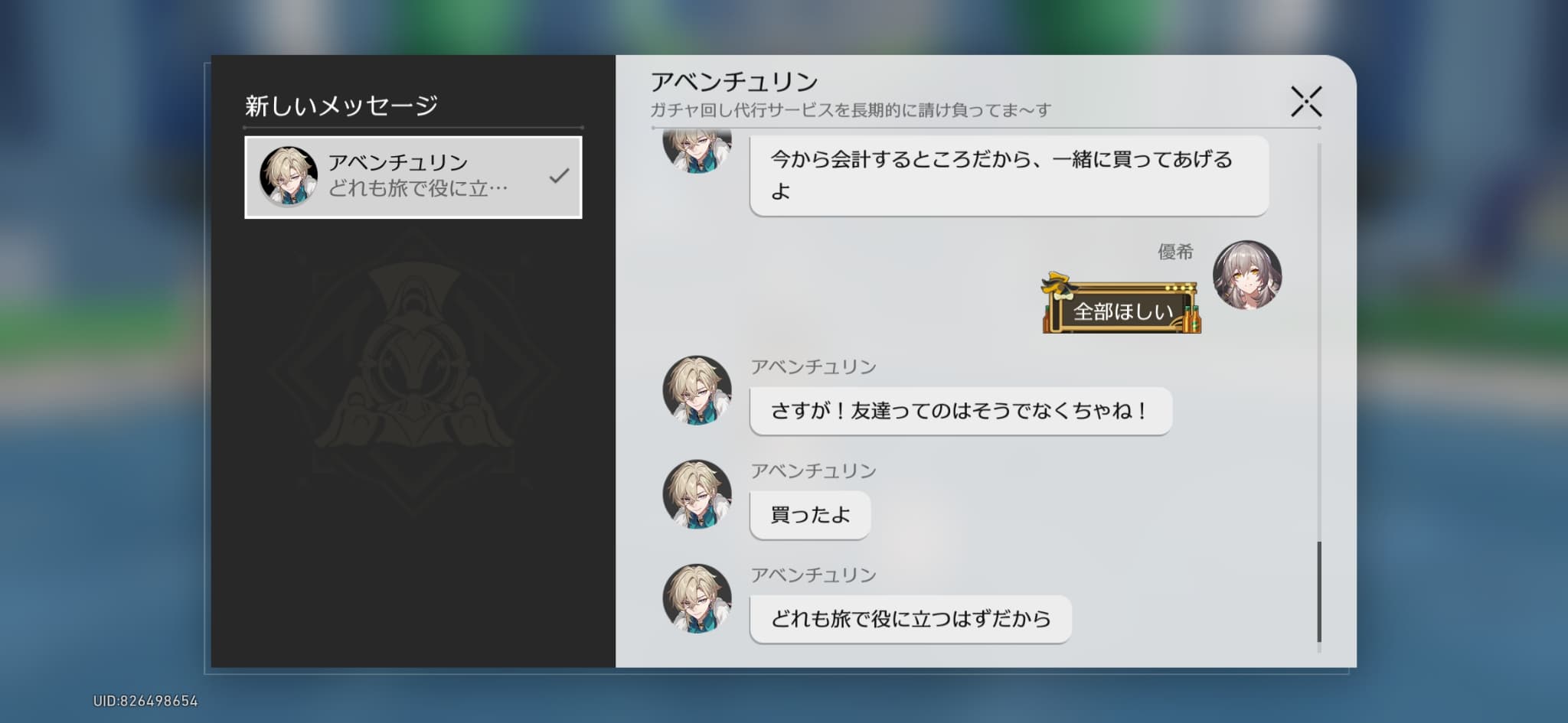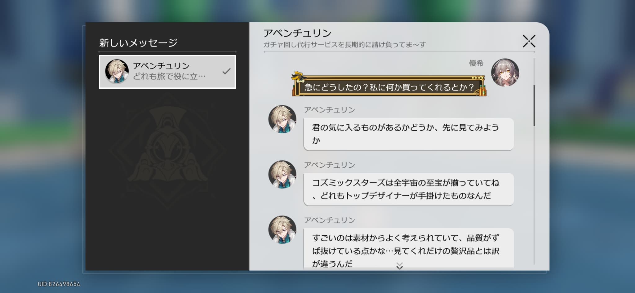 マイフレンドにデロ甘なアベンチュリン氏…※ログインメッセージ