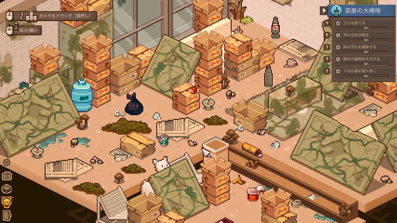 藍鼠 @admin #Steam 夢物語の街 『夢物語の街』は、のんびりと癒やされるお片付け&インテリアゲームです。 町の住民からのさまざまな依頼――引っ越しや片付け、掃除などのお手伝いをしていくうちに、思いがけず彼らの人生に影響を与えたり、小さな秘密に出会ったりすることもあるかも…… お片付けゲームUnpacking系列。ゲーム内容の説明に惹かれたのと、可愛いドットアイテム盛りだくさんだったので 1800種あるらしい。すごい 続きを読む 黙々と実績コンプまで遊んじゃった。楽しかった 最初にプレイヤーになる家政スタッフは男女から選べるけど差はなさそう。 依頼主が持ってるアイテムを部屋に配置していくのがメイン。一回半くらい指定されたところに置いてね、があったくらいで基本的にはプレイヤーに全部丸投げ(“半”は途中からプレイヤー任せになった墓場) 大型デパートで子猫探すだけの依頼も一回あったw 過去へ飛んでおじいちゃんの手伝い(片付け)するやつと、遺品整理の手伝いも特殊かな ミニクエストで植物研究(種と鉢植えと栄養剤の組み合わせで新種発見)したり、部屋に置かれてた錬金釜とレシピで亜空間への扉開いてみたり、空き家を見つけるとお掃除クエストが発生したりする。お掃除クエストもっとほしかったな~ 劇的ビフォーアフター 掲示板に依頼って形でもお部屋作成があるけど、こっちは自分の手持ち(倉庫)アイテムで依頼主の希望するようなモデルルームを作る感じっぽい。手持ちが少ないときに受けて、半端なワンルームで放置されてる部屋があります 唐突にぶち込まれるホラー 監禁!?差出人不明の謎の手紙!!?そういう世界観???て混乱した この社員証の人、異世界転移してそうだし(なお、後日救助されたと新聞に載る) 博物館に浮かぶ“謎の数字”をゼロにしたあと入れる部屋はmoonを思い出した。管理者はいずれ戻ってくるのだろうか 実績はベーカリーのクロワッサン🥐とおじいちゃんのお墓🪦はわからなくて攻略に頼りました Steamにあるコミュニティ掲示板+DeepL先生ありがとう パン屋のパンは焦げるまで焼けるし、焦げたパンを焼くと焼く前の状態に戻る アイテム収集はほぼガチャなのがちょっと惜しい。色々アイテムあるのにメインではほんの一部しか出てこない 未所持のが出やすい?っぽいのが救いですが(図鑑に載れば店で買えるようになる)、ガチャは悪い文明 いうてメインクエストの報酬と街中ウロウロで拾う分で揃えられそう感はある 食べ物ガチャが見当たらないんだけど、街中にある屋台と自販機(一回ずつ)がそうなの? 自由にお部屋飾り付けってのはあんまり興味ないけど、空き家(自宅)いっぱい手に入るし、別荘ももらえるし、なんなら家ごとに間取りまである程度変えられて好きな人にはたまらんだろうな リフォームで壁やら床やらアイテム(一部)色とか材質変えられるのすごい ほぼガチャなの惜しいって思ったのはアイテムごとに触れると一言コメントが出るから。ないのもあるけど、置かなきゃ見られないの残念 左は全部指定箇所に配置する依頼で、右はゲーム内のカメラ機能で撮ったスクショ。ドットの家具がかわいい キャラの日本語が安定してないのが残念かなwこの楽器店の店長さんもその妹さん(バー経営)も唐突に俺女の男言葉になります。 【追記】 アイテム集めきった! 食べ物は自販機(飲み物)と屋台(その他)、カクテルはバーに置いてあるシェイカーで作らないと埋まらないようです シェイカー、依頼やってるときも触ったけど“不明な液体”しか作れなかったwちゃんとカクテルできるんだなあ 参考:夢物語の街 攻略メモ|sasamix https://share.google/hOcovvbu49UN14c0m ※キューバ・リブレ以降のライムジュースorレモンソーダは入れない(レモンジュースはアイテム自体がない)畳む