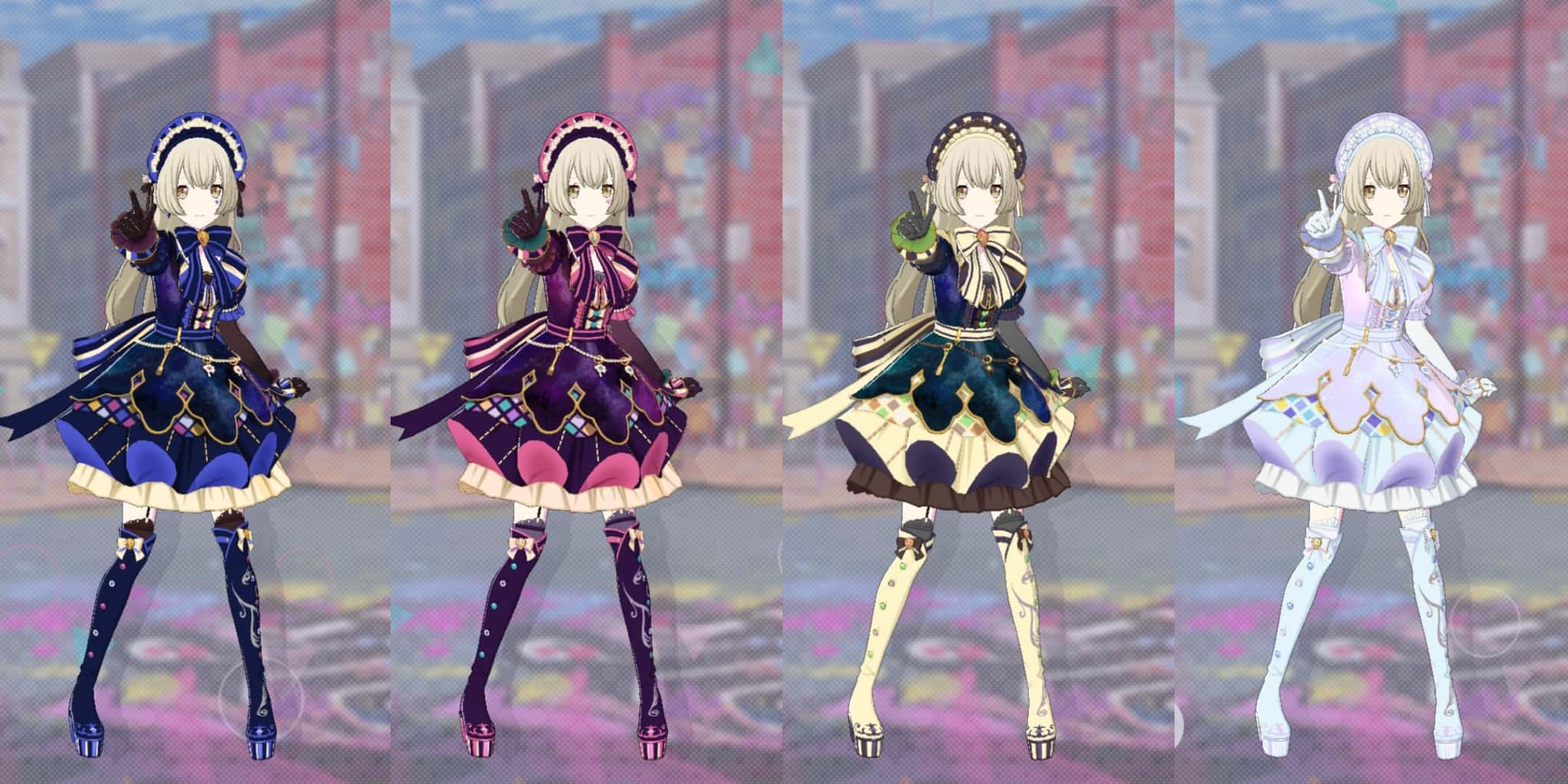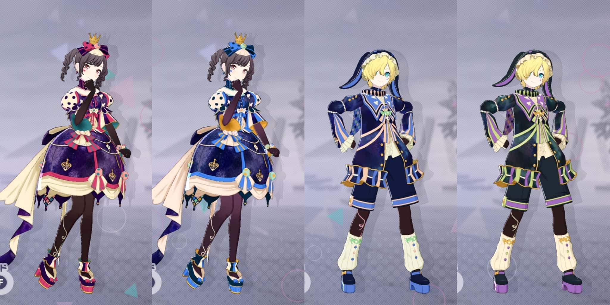 藍鼠 @ainz_fav 3日前 ゴテゴテしている 目元のメイクでダショにあったピエロ衣装思い出した。今度着せてみるかなあ ロング嬉しい。こはねちゃんは髪色のおかげであんまり衣装色選ばないからいろいろ着せられるね 絵名とレンも髪型解放でアナザー1までは見られたので一緒に #衣装確認