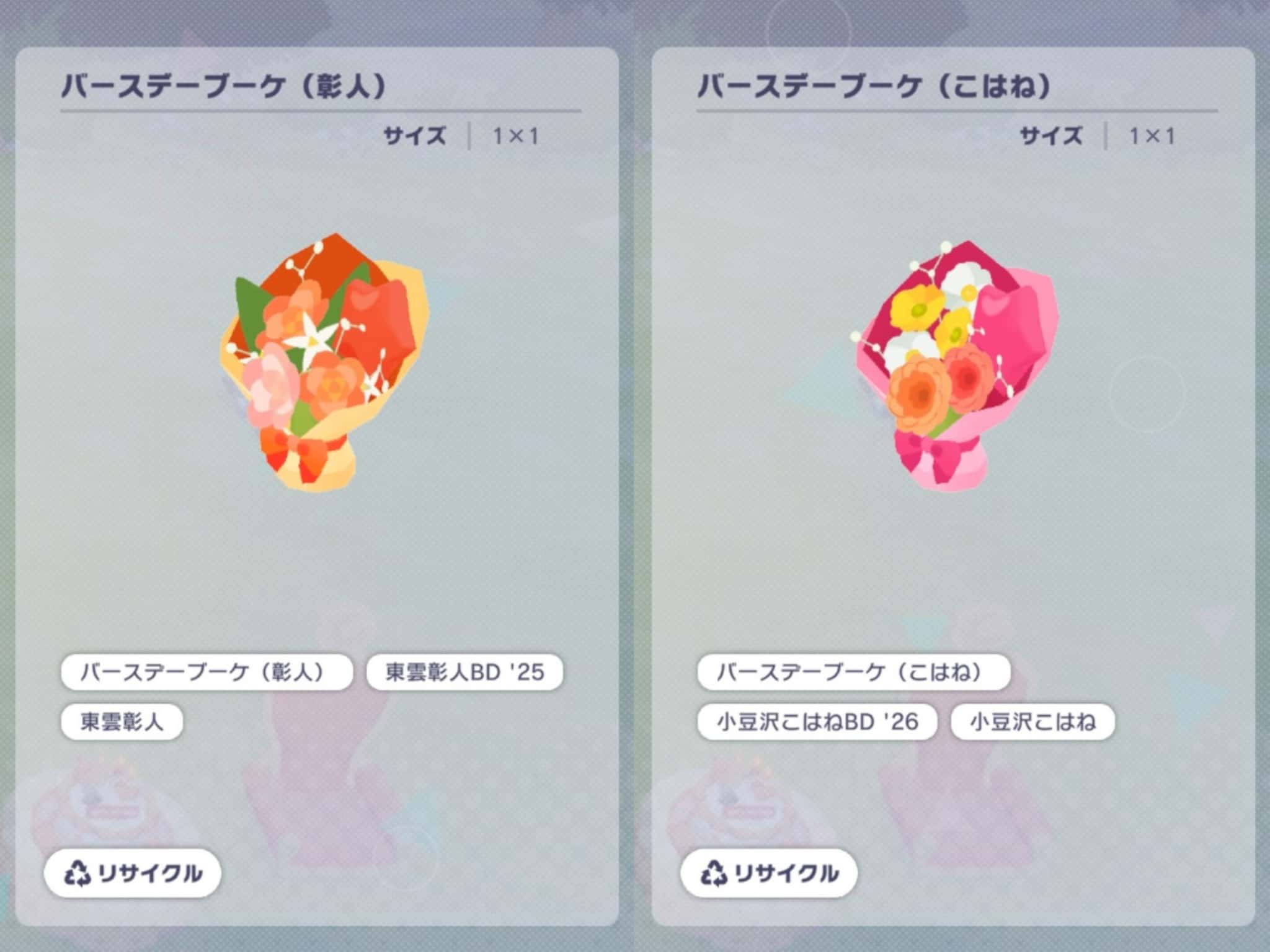 藍鼠 @ainz_fav 2日前 #マイセカ あとマイセカの彰こはお誕生日の花束。ふたりとも暖色でまとめられてるの好き。こはねちゃんのやつお花のところ彰こは感。オレンジが前に出てるからさあ…オタクはこじつけで萌えられる生き物だよ ケーキ。これマジパン(たぶん)の服は私服の色ベースなのかな?彰人くん黒、こはねちゃんがオレンジだし ハートには名前入ってるけど、逆に使いまわし感が増してる気がするんですよ…