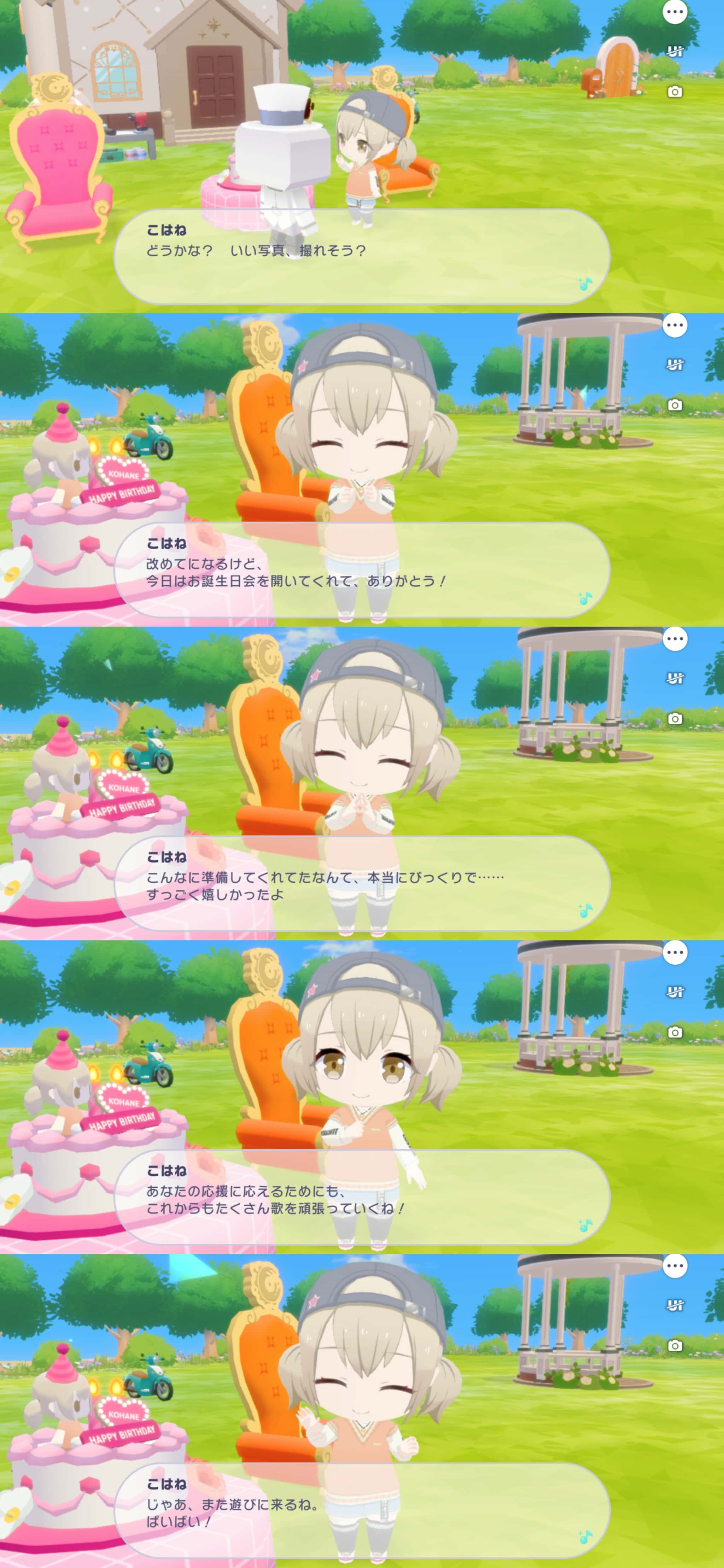 藍鼠 @ainz_fav 1日前 #マイセカ #キャラ誕 こはねちゃんのお誕生日パーティ🎂も動画埋め込み この動画を再生できない場合は、ダウンロードできます。 天気を晴れにしようと思ってたのに忘れてそのまま一回見たから「思い出す」になっちゃった。元は「招待する」とかだった気がする 隣に置いてた彰人椅子がっつり映ってるし、後ろはうるさい(たまごっち勢の出す音)けどまあこれも味かなって。彰人誕のときもうるさかったのに学ばないプレイヤー しまってからもう一回はめんどくてぇ…(本音) 再生後会話、アップにできるの思い出したから真正面からのこはねちゃんだよ可愛いね 「ばいばい!」でちっちゃい手振るのがとてもかわいいです