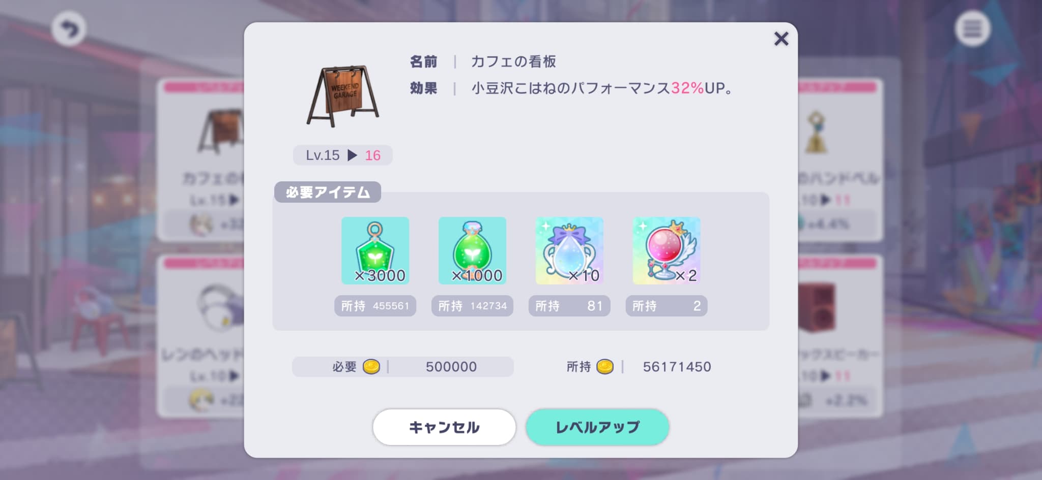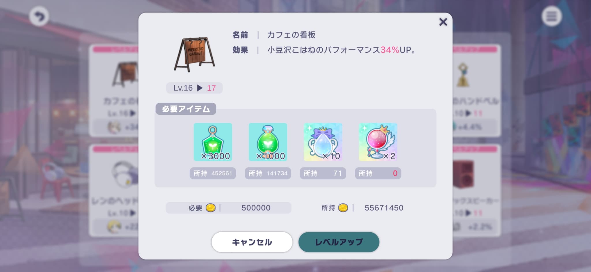 オブジェクトのレベル限界突破されたの思い出して、白いオーブ変換して試しに上げてみたら、16以降は毎回雫要求されるんだ…